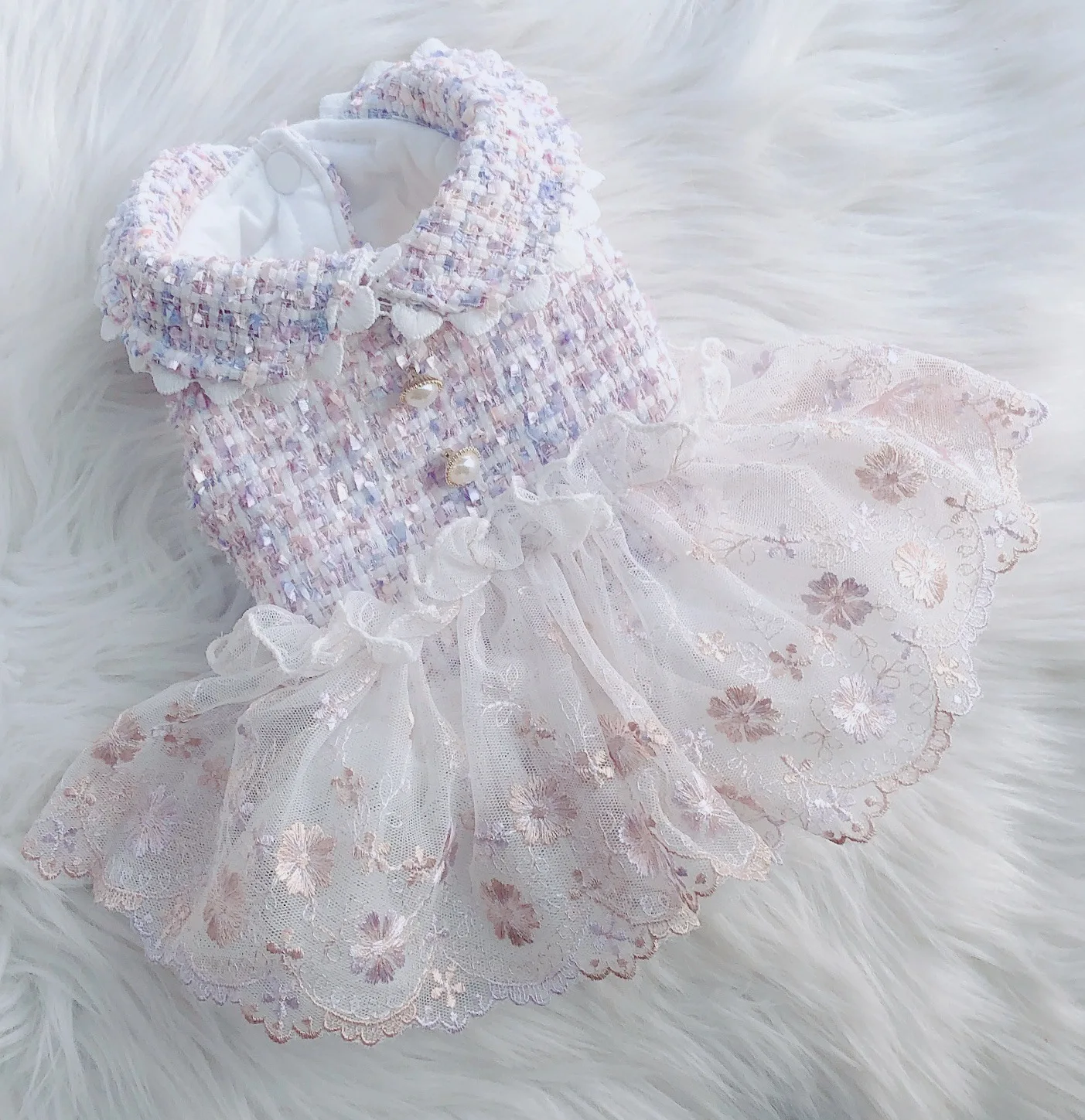 Princess Dress for the well dressed fur baby! Plaid & lace design, tulle skirt, and beautiful pearl embellishments. A lovely addition to your baby boo's wardrobe!